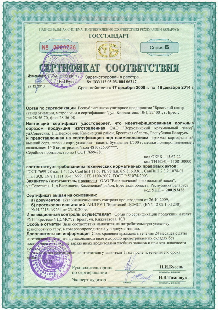 По показателям качества поставляемый крахмал картофельный соответствует требованиям стандартов: